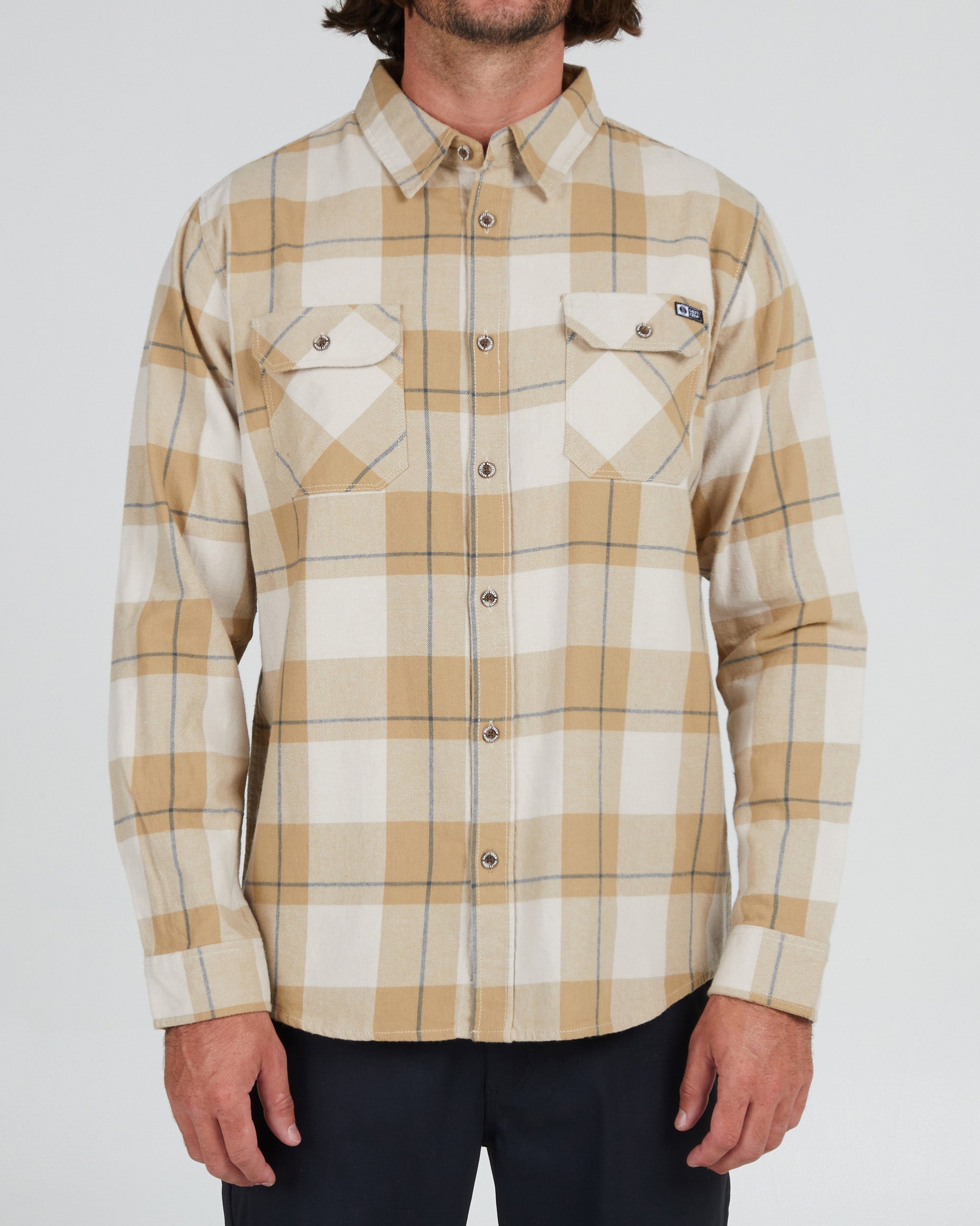 Two chest pockets with button flap closure